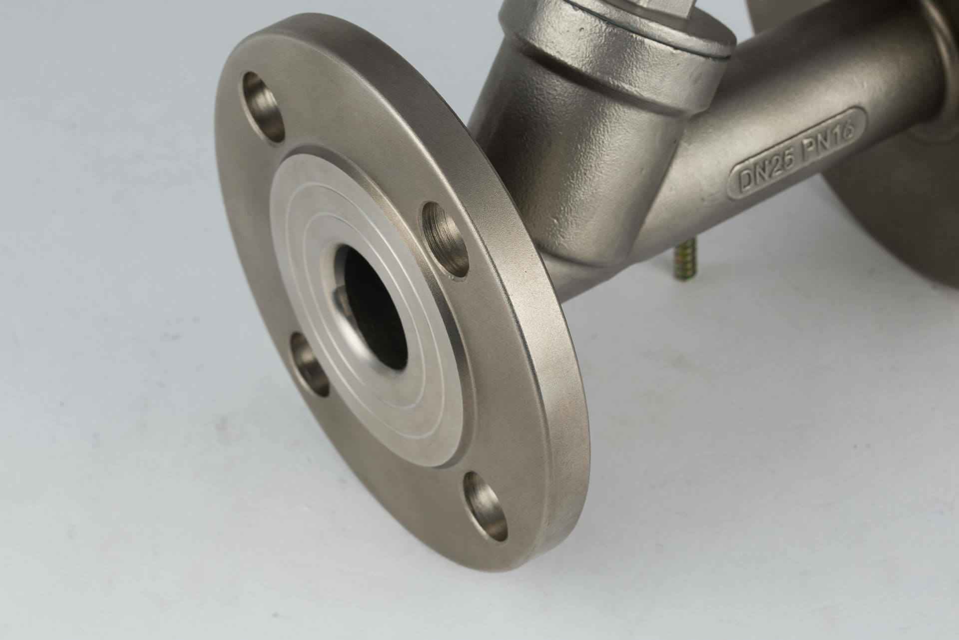 塑料头不锈钢气动法兰角座阀